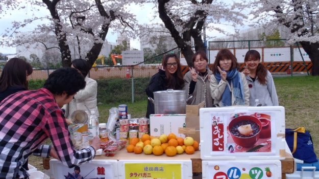 今年のエレメンツのメニューは ☆焼きカニ ☆カニ汁 ☆おしるこ ☆フルーツポンチ ☆鮭 途中で雨が降ってきましたが一瞬でやみましたね♪ けど寒かった(*_*) 桜はちょ~満開でしたね♪